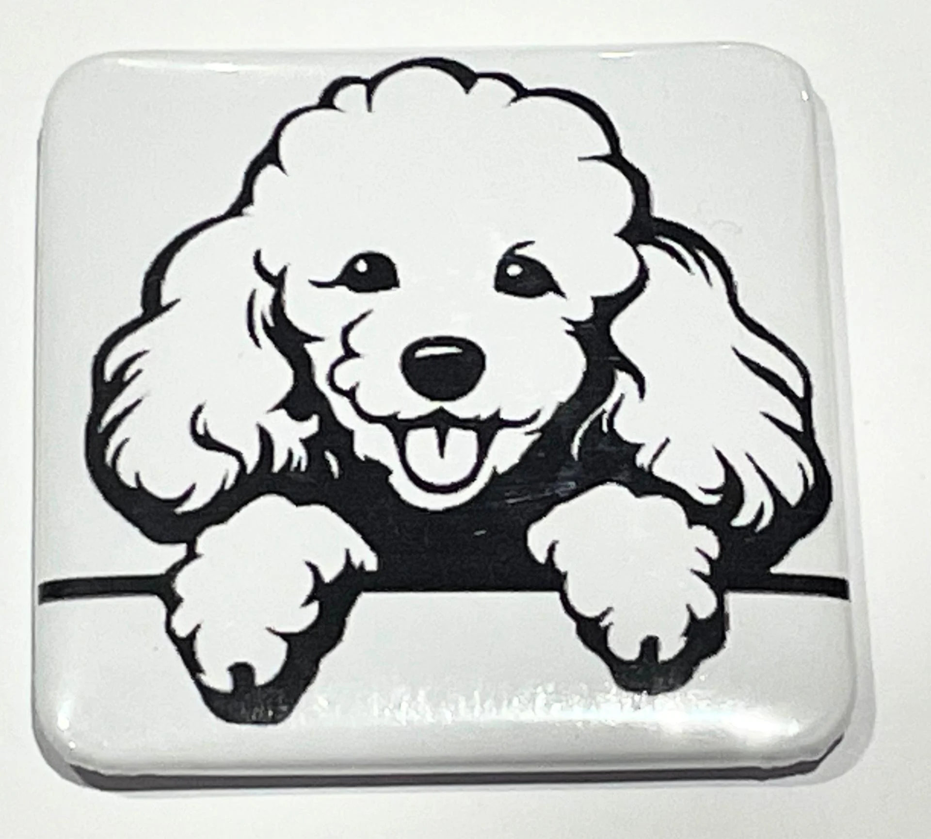 Je souhaitais vraiment pouvoir réaliser des magnets personnalisés. Un animal, un thème, une photo, un événement à annoncer tout est possible ! Magnets carrés soit aimantés soit avec une épingle pour un badge. Enterrement vie de jeune homme et jeune fille, ça ferait un petit souvenir !